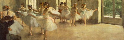 De meeste werken van Degas zijn schilderijen van jonge danseressen op toneel of tijdens repetities. Toen hij ouder werd begon hij slechter te zien en is hij met beeldhouwen begonnen. Hij maakte vaak ook eerst een foto voordat hij begon met schilderen, daardoor zijn het vaak opvallende composities die Degas gebruikte. De sfeer in de schilderijen spreekt me erg aan en de manier waarop de danseressen staan wekt mijn interesse.